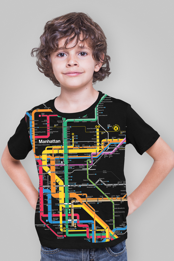 ALL ABOARD, Kids! OUR NEW Diagram Map Manhattan Subway Tee has our NYC Subway Line logo on the back and a hangtag with the story of the building of the NYC Subway System!